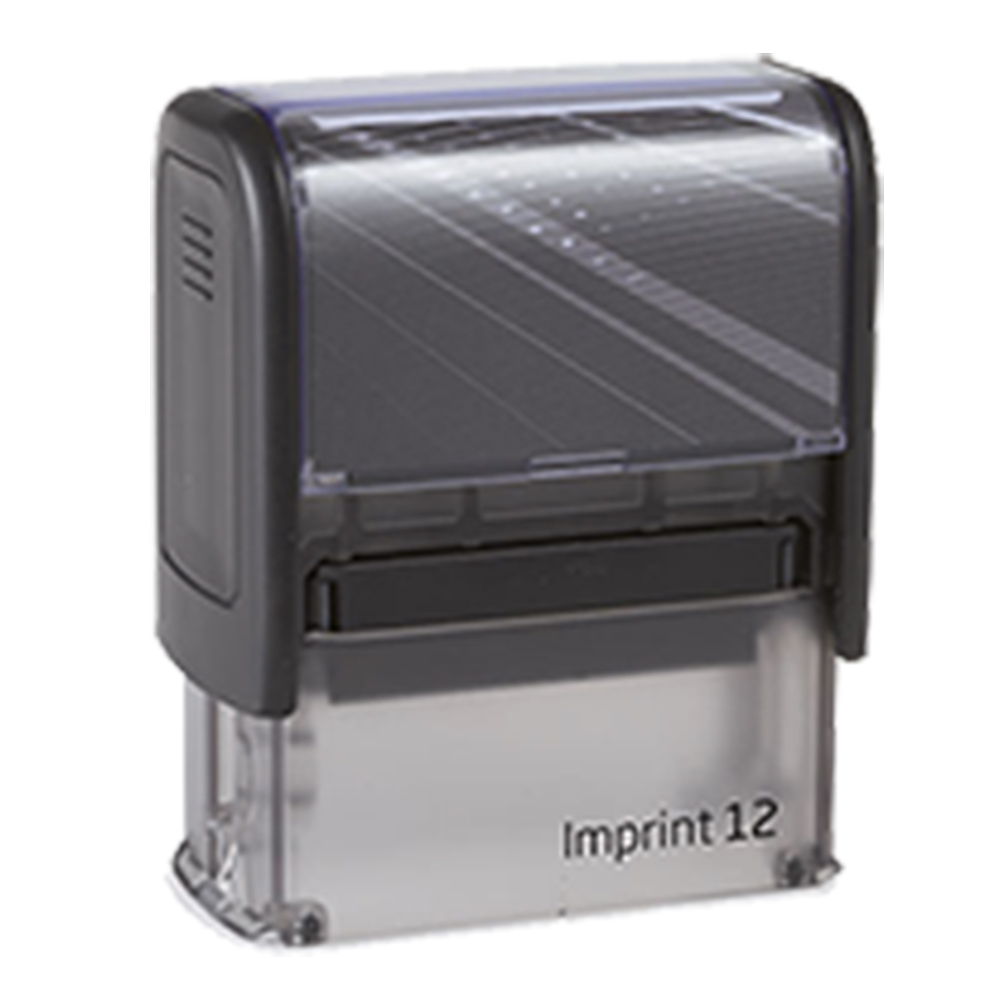 Der kostengünstige selbstfärbende Stempel Imprint 12 druckt einen rechteckigen Druck von 47 x 18 mm, auf dem Sie maximal 4 Zeilen haben können.